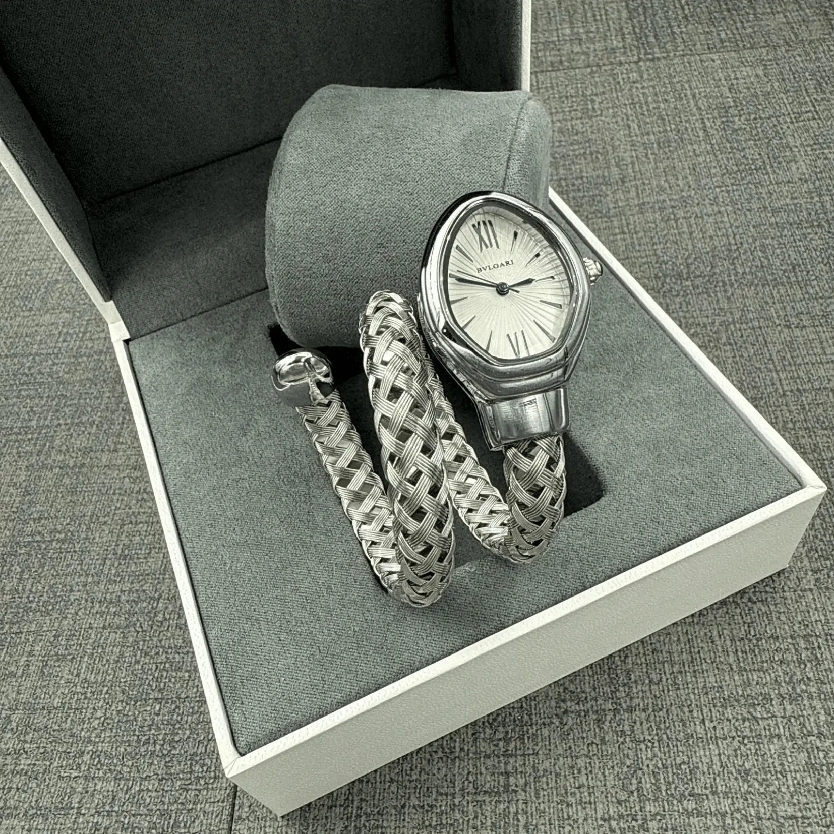 Bvlgari Serpenti Spiga merges Roman-inspired design with modern appeal, featuring a spiral bracelet structure. This timepiece is designed for women who appreciate both timeless beauty and the finesse of fine watchmaking. Whether worn casually or on special occasions, it stands out with a unique charm that blends luxury and practicality.