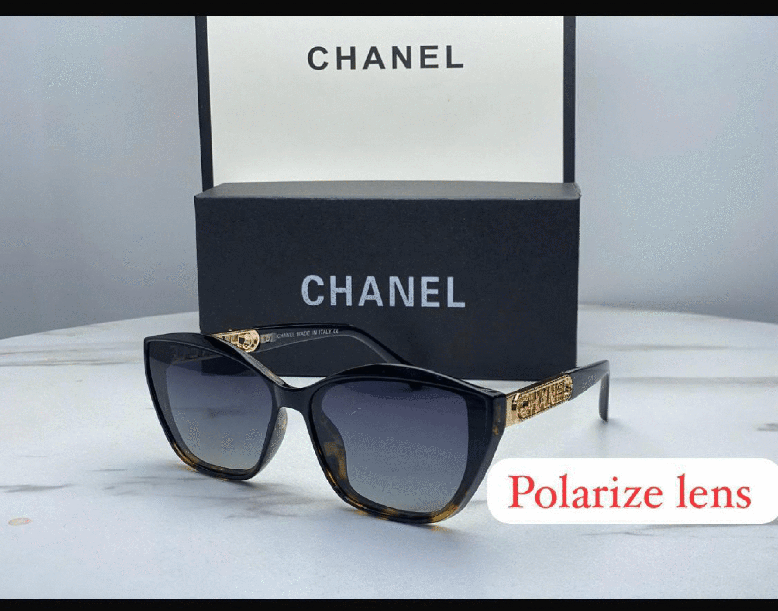 Crafted from premium acetate and adorned with Chanel’s signature logo on the temples.
