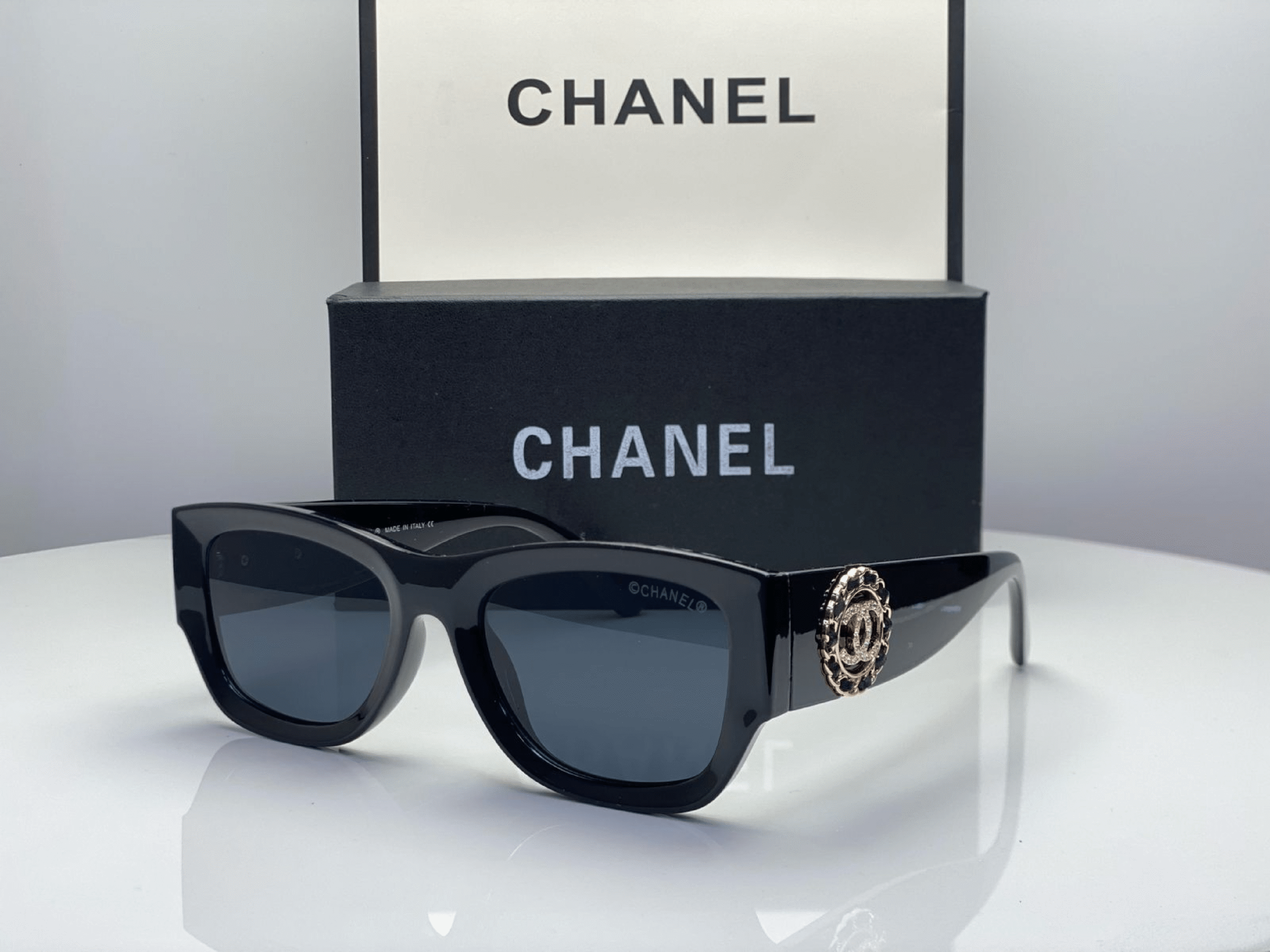 The Chanel CH5507 sunglasses feature an oversized square frame with a refined and structured profile.