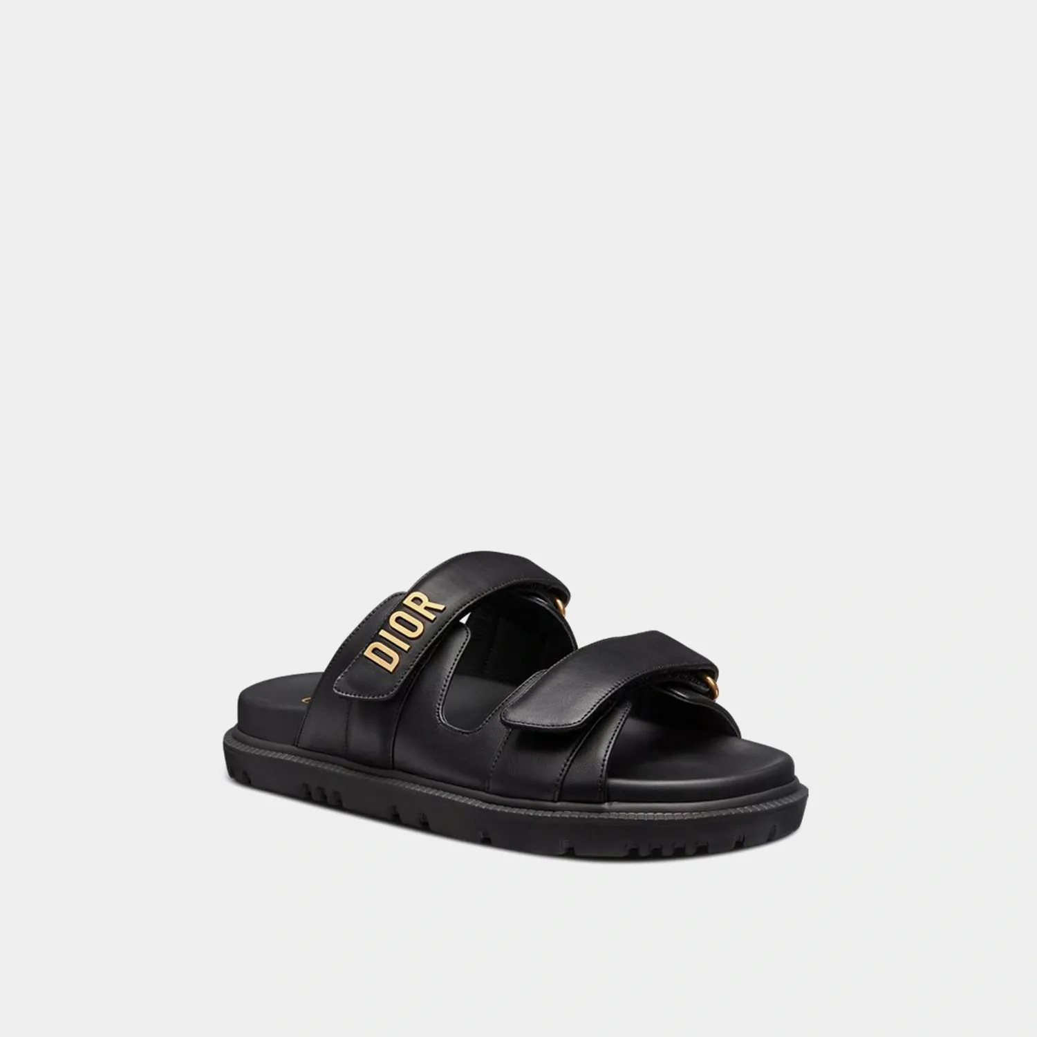 Sleek slide-on style crafted from jacquard Oblique or smooth calfskin; broad straps sit atop cushioned leather footbeds and gloss-edged soles—effortlessly combining comfort with elevated sporty elegance.