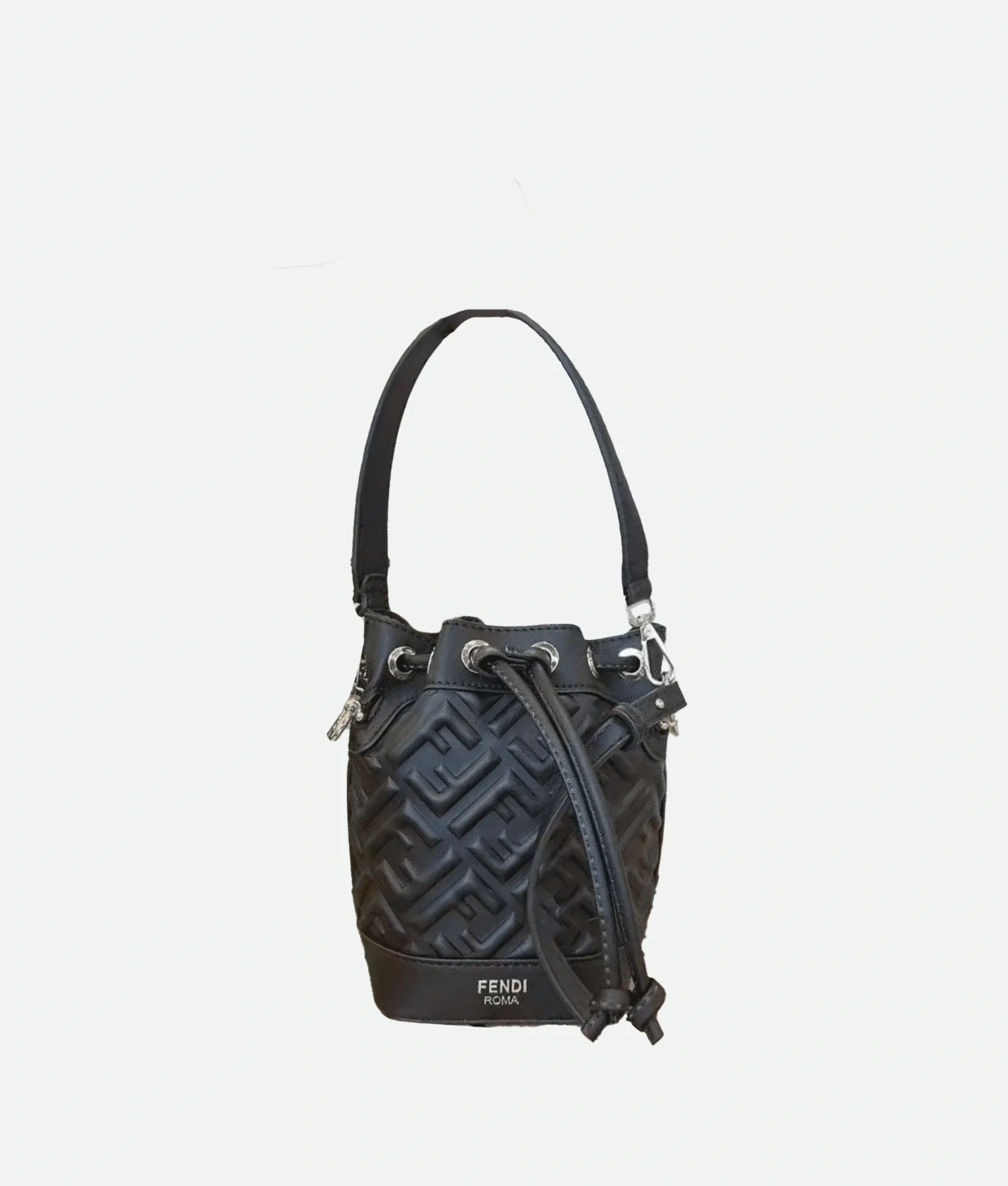The Fendi Mon Tresor Mini Bucket Bag captures playful sophistication in a compact, iconic design.