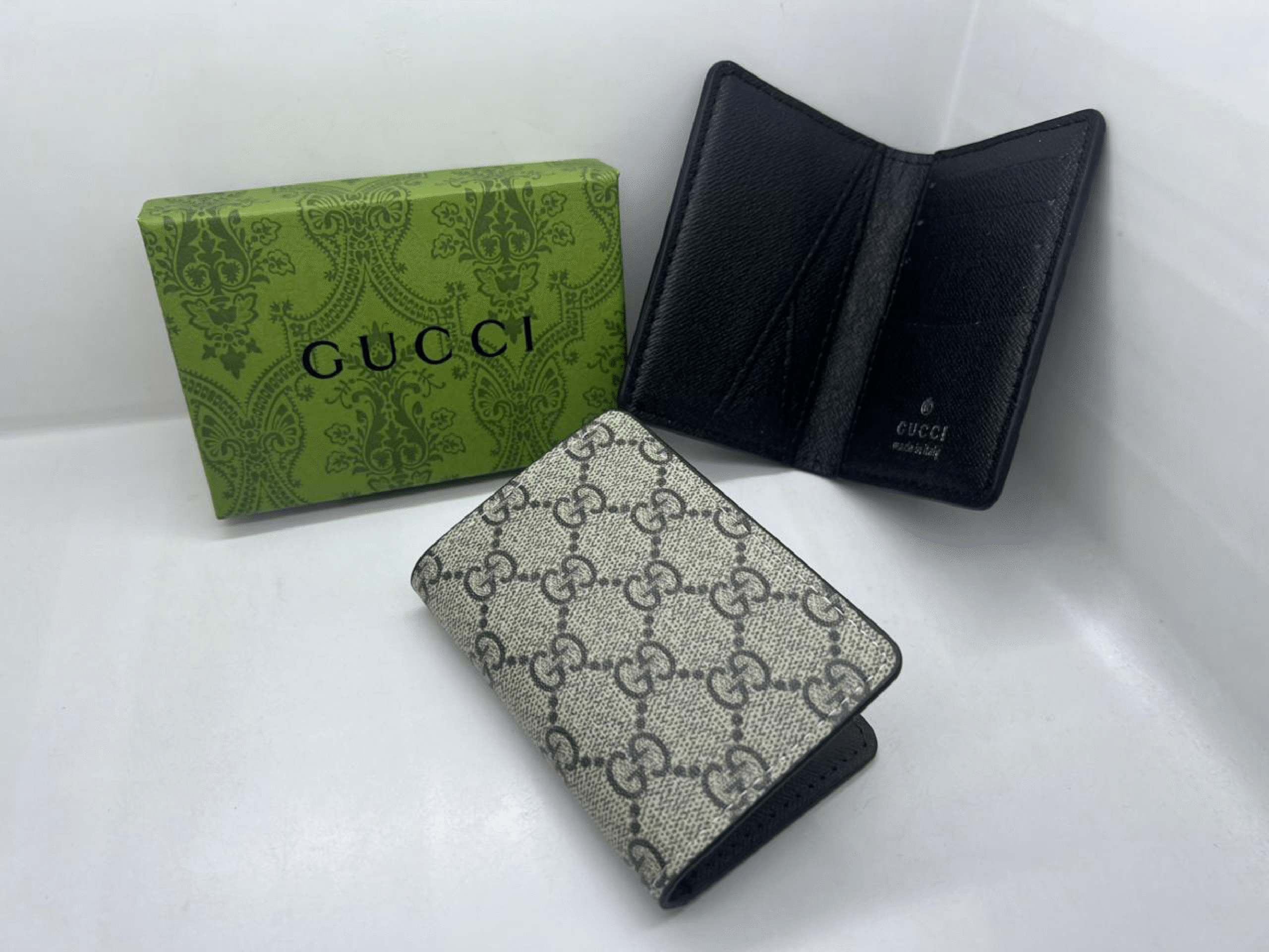 Crafted from GG Supreme canvas with smooth leather trim, the Gucci Canvas GG card holder combines iconic monogram style with sleek practicality. Its slim layout includes multiple card slots and a central compartment for folded bills or receipts, offering organized storage without bulk. The structured silhouette and meticulous stitching ensure long-lasting durability, while the GG pattern adds timeless elegance. A refined, minimalist accessory that seamlessly blends Gucci’s heritage craftsmanship with everyday functionality.