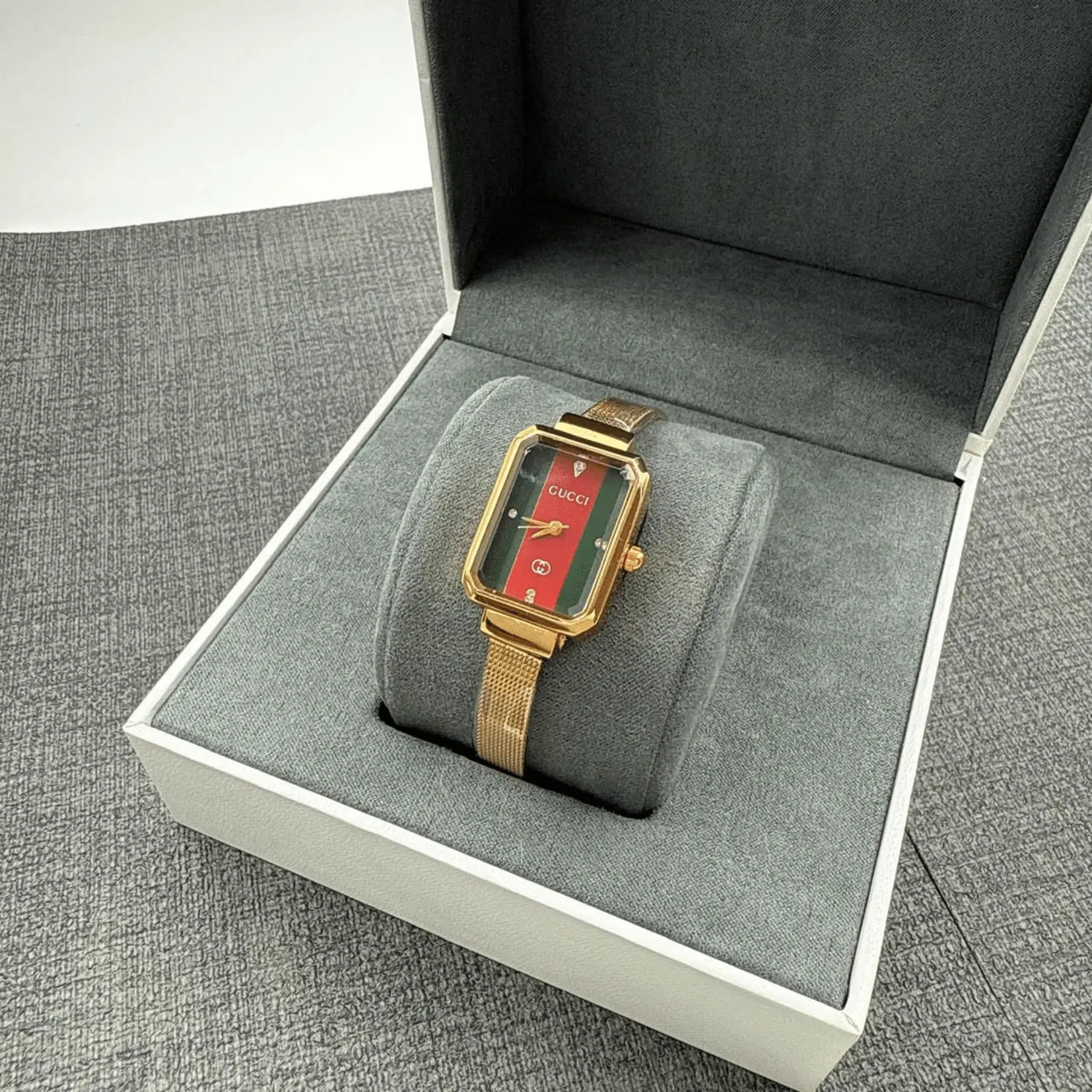 Gucci GG Square Watch features geometric shape and GG pattern, ideal for fashion statements. This timepiece is designed for women who appreciate both timeless beauty and the finesse of fine watchmaking. Whether worn casually or on special occasions, it stands out with a unique charm that blends luxury and practicality.