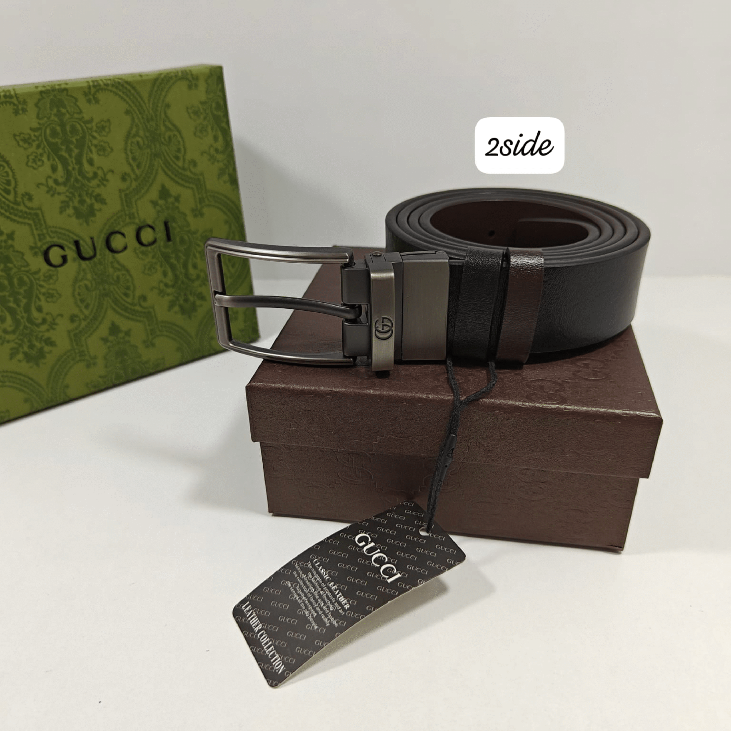Crafted from high-quality leather, it features a sleek buckle and a reversible design for versatile wear.