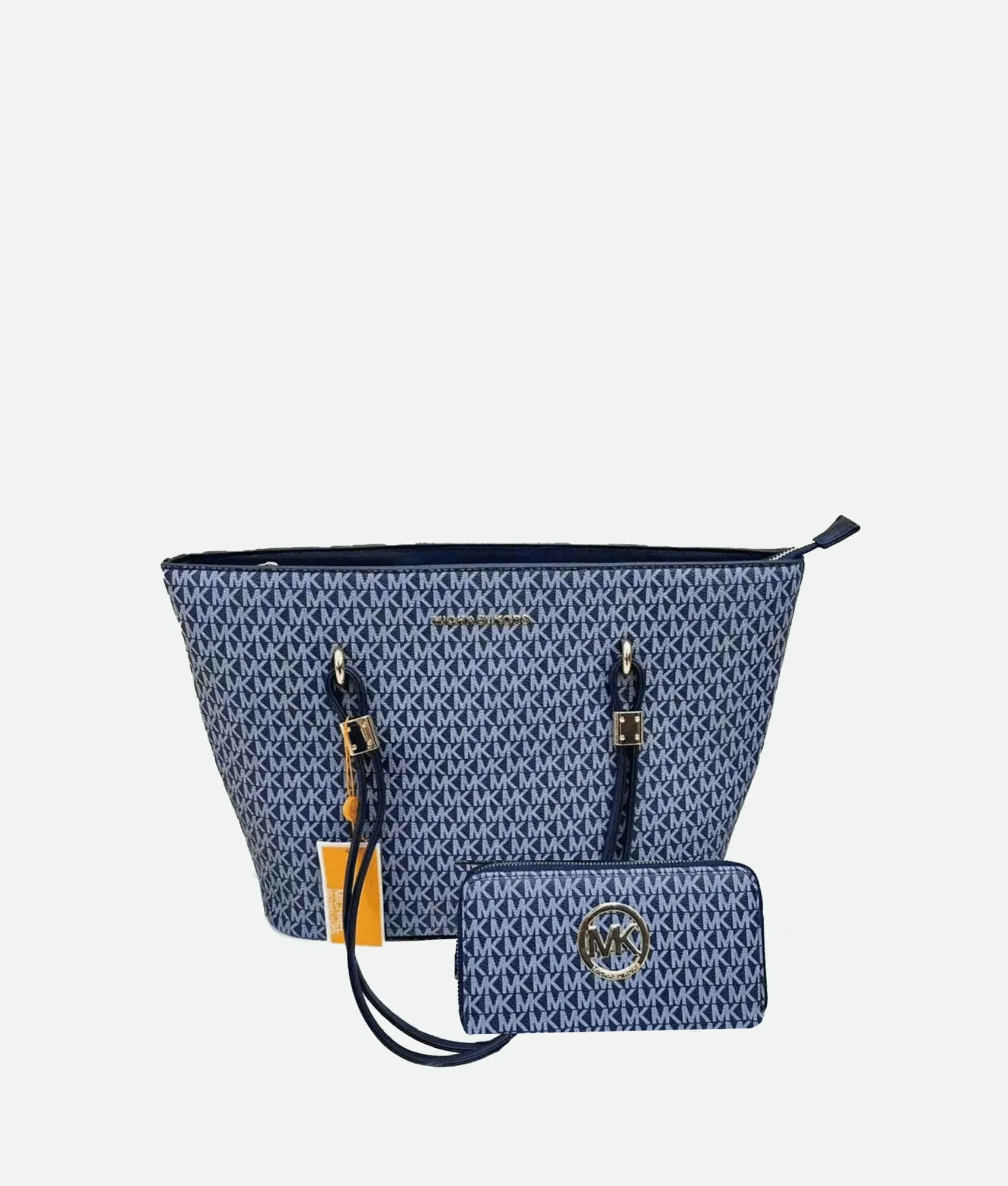 Crafted from coated canvas adorned with the iconic MK monogram, it features smooth leather trim and gold-tone accents.