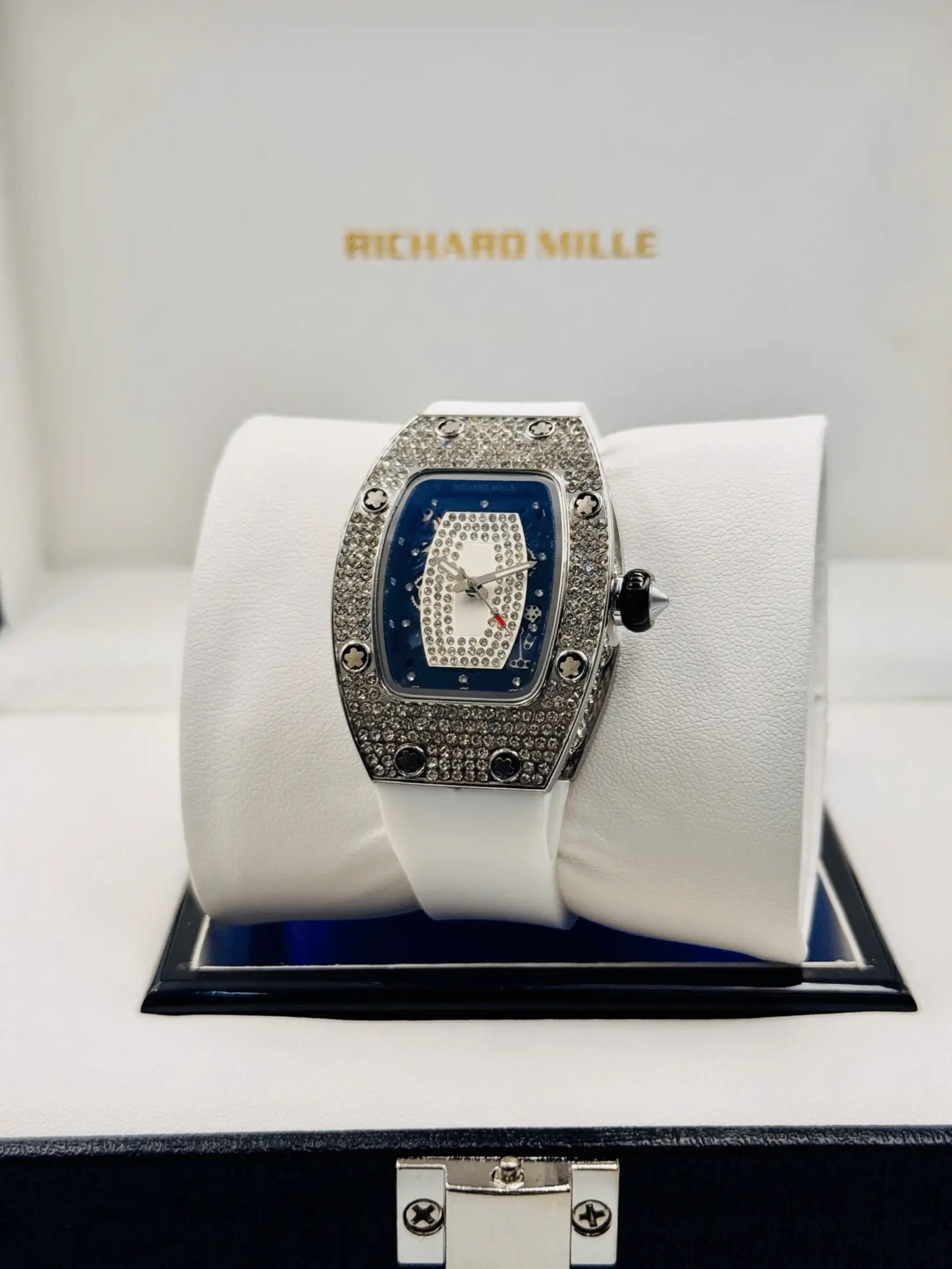 Richard Mille RM 07 Ladies is a masterpiece of technical luxury with skeleton movement and gem-set case. This timepiece is designed for women who appreciate both timeless beauty and the finesse of fine watchmaking. Whether worn casually or on special occasions, it stands out with a unique charm that blends luxury and practicality.