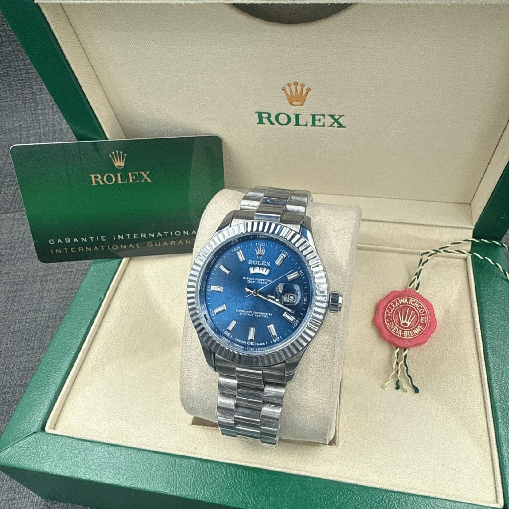 Powered by a self-winding Rolex movement for precision.