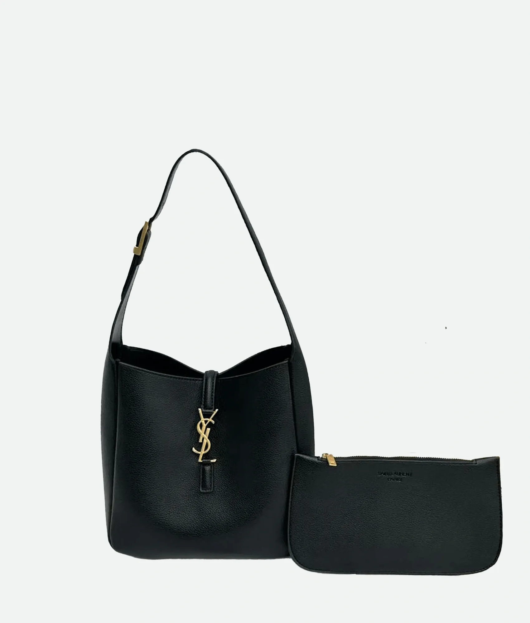 Crafted from supple leather, it features the iconic YSL logo in polished metal and refined tonal stitching.