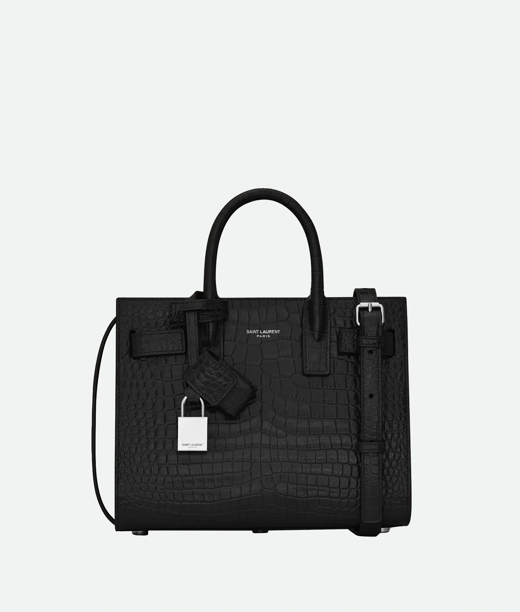 The Saint Laurent Sac de Jour Crocodile bag exudes power and prestige through its refined, structured silhouette.