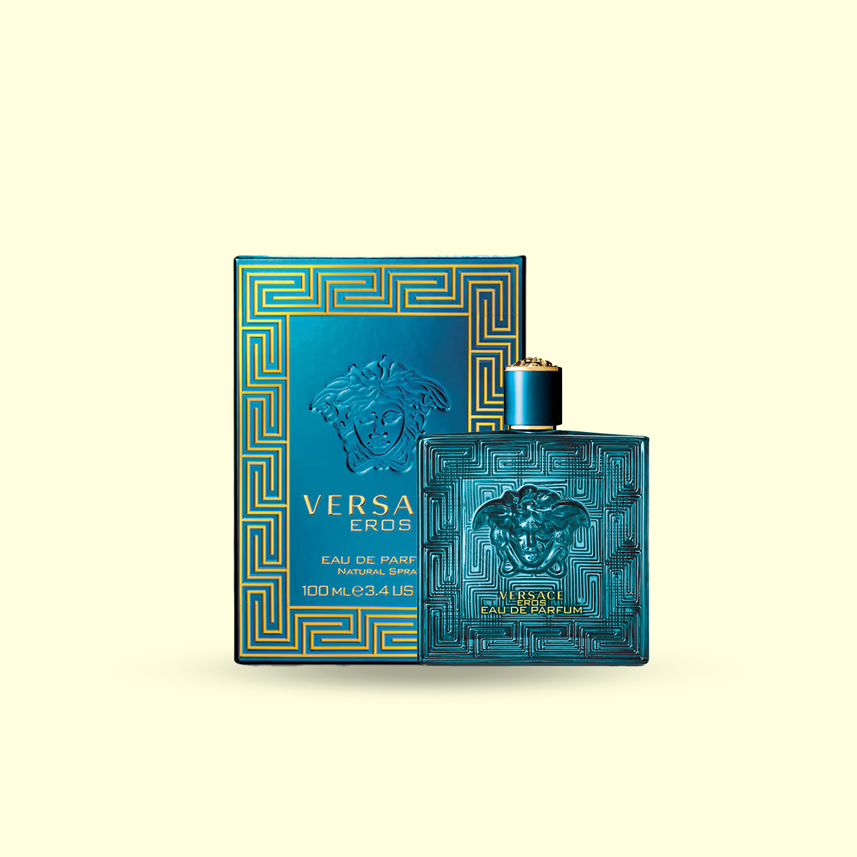 Eros Pour Homme Eau de Parfum is a seductive fragrance inspired by the classical Greek God of love. Its confident and masculine notes embody sensuality and power. The fragrance is housed in a transparent blue bottle, adorned with a central Medusa, Greca engravings, and gold accents on the cap. To enhance the fragrance’s longevity, apply it to key pulse points (neck, inner wrists, behind the ears, or chest). Avoid spraying the fragrance directly on delicate materials and jewelry, as this may cause damage.