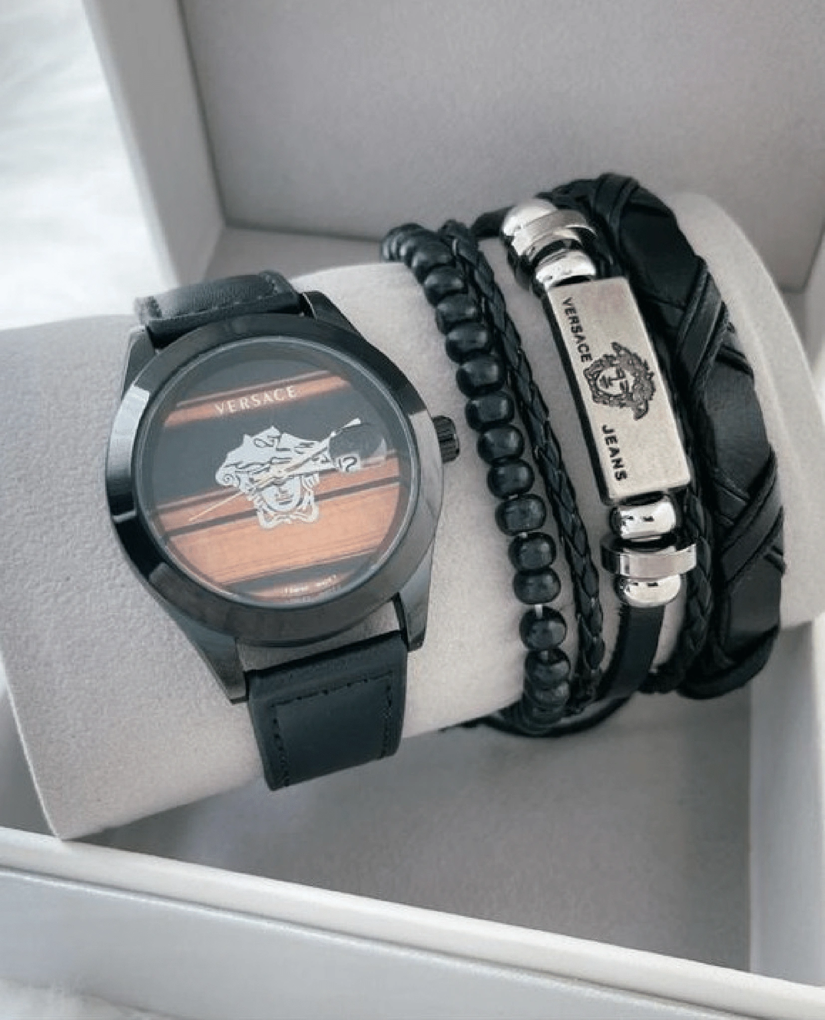 The Medusa emblem, gold accents, and intricate detailing capture signature flair.